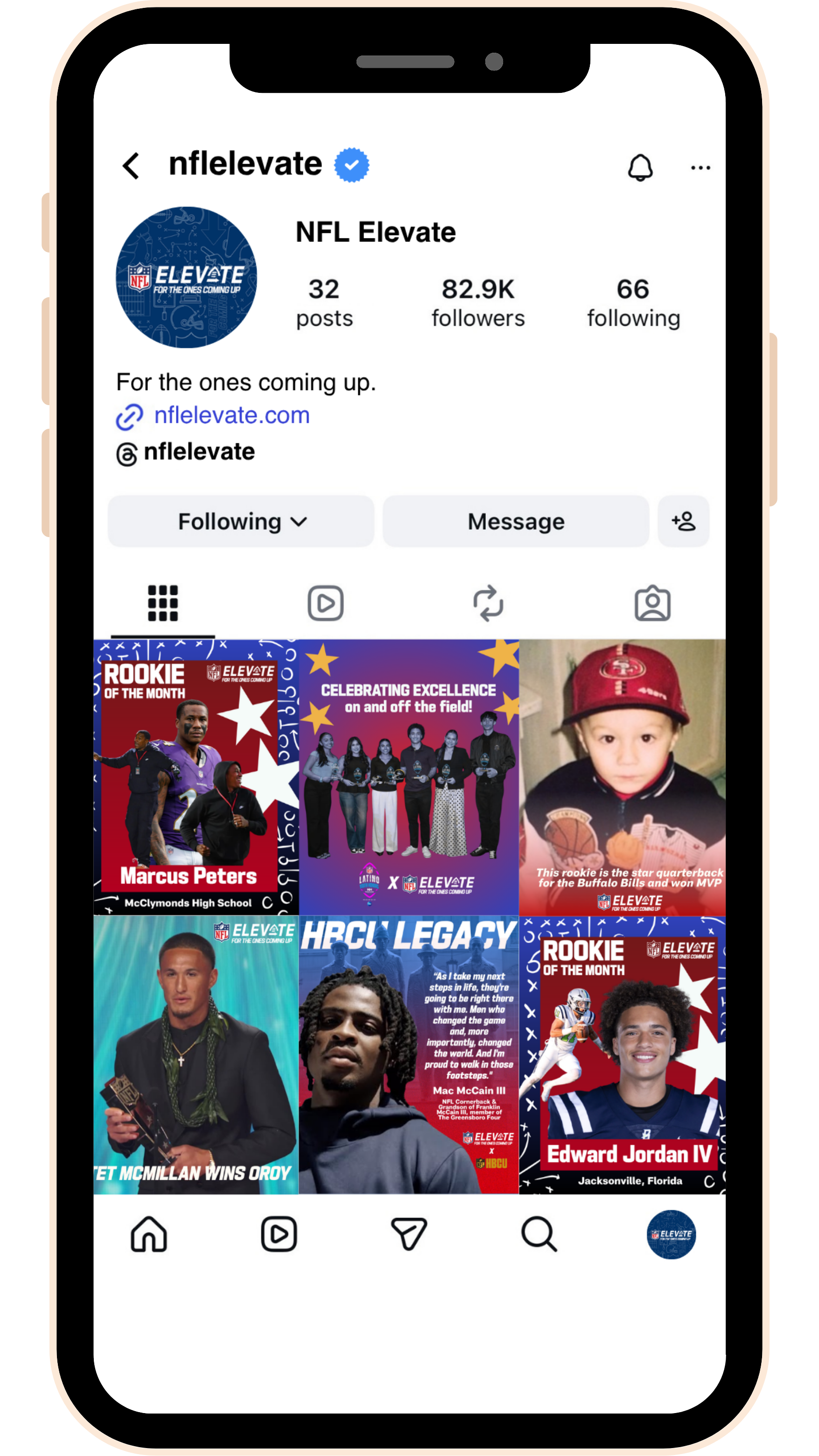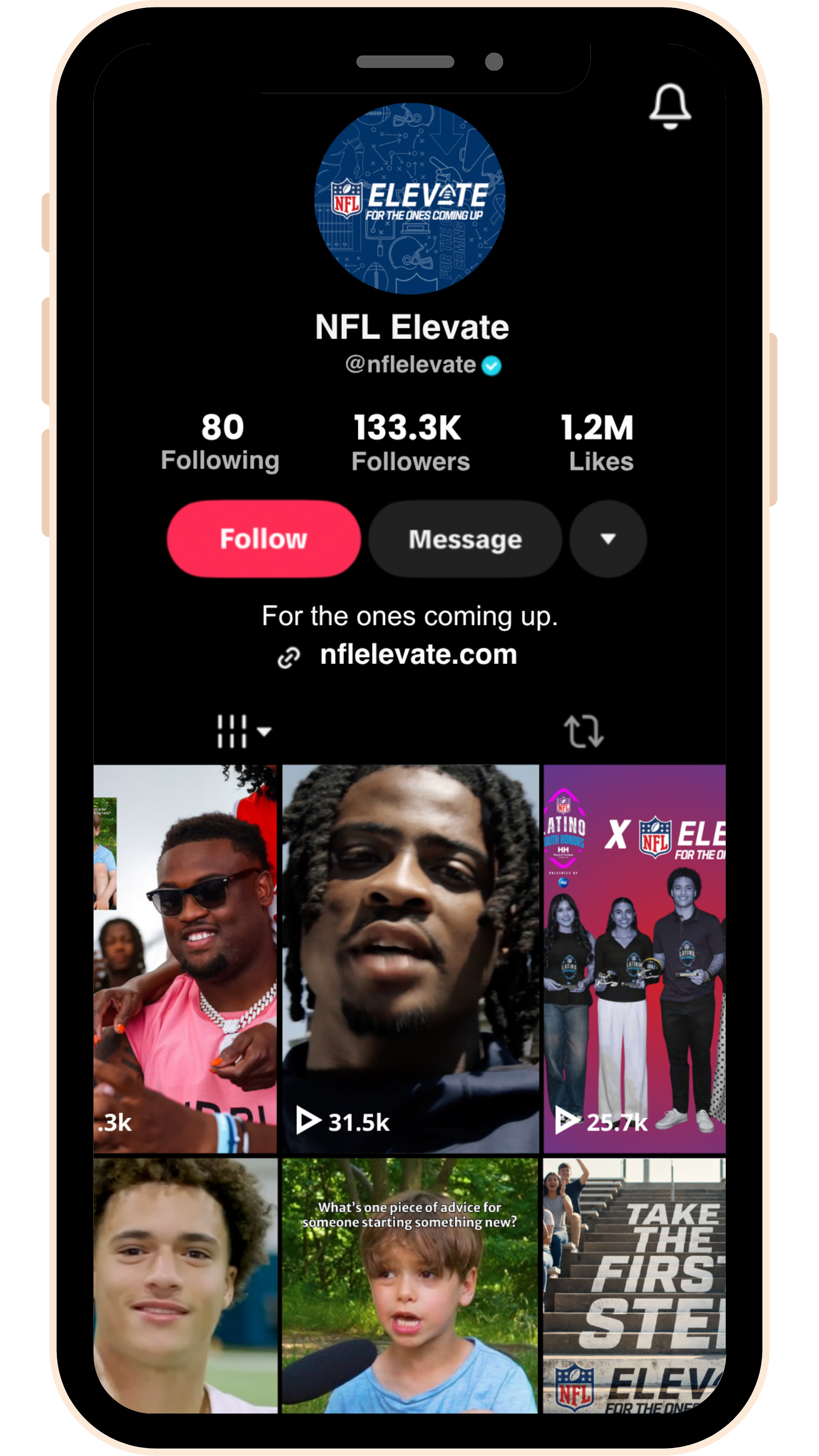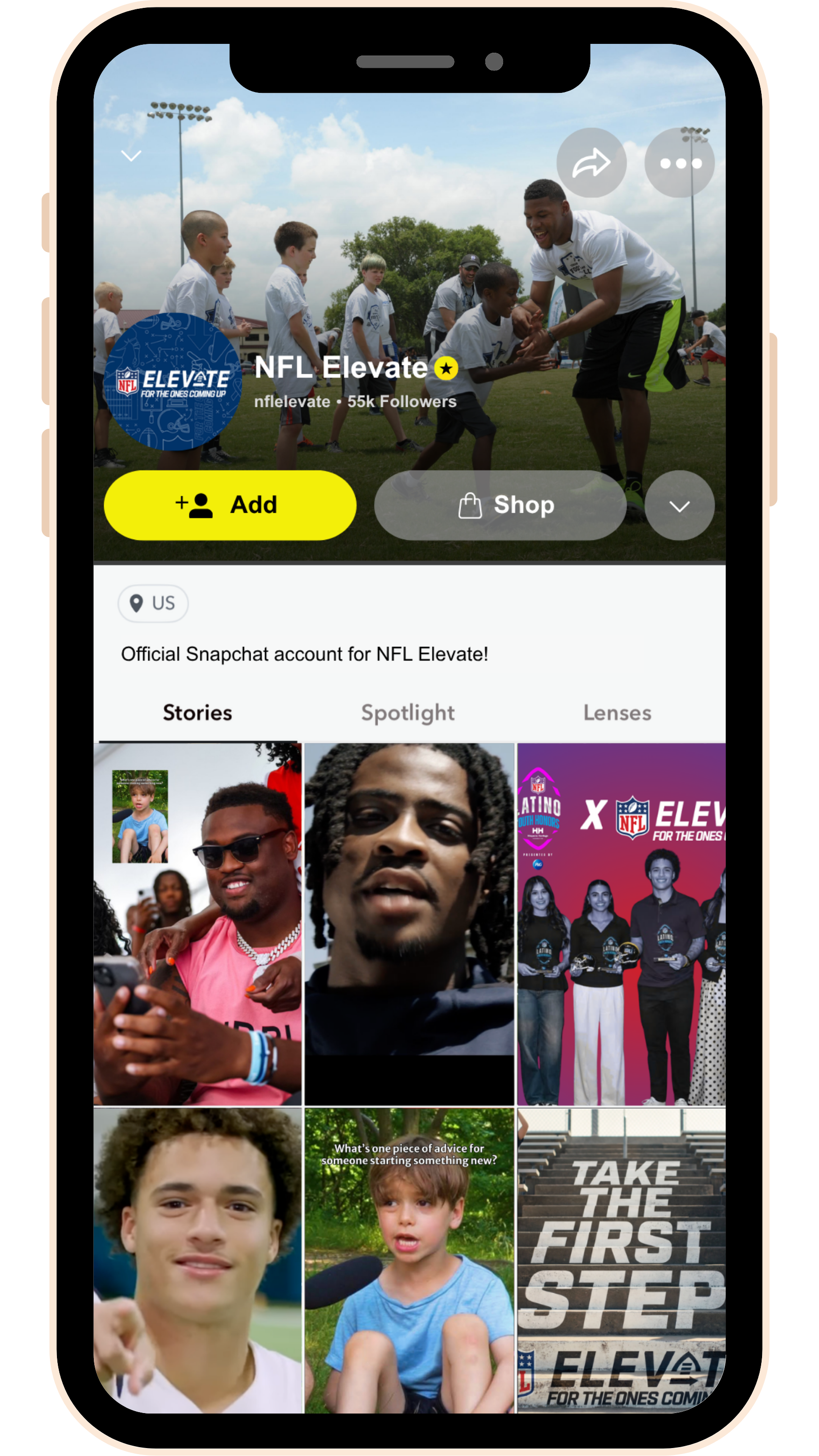 NFL Elevate meets the football-curious right where they are with social pages across YouTube, TikTok, Instagram, and Snapchat. These unite all youth health and wellness initiatives and highlight rookie stories everywhere.